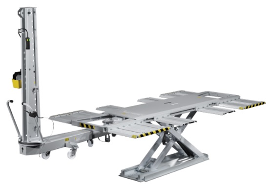 Используется как электрогидравлический подъемник и как рихтовочный стапель, оснащен силовой башней с усилием 10 тонн, полностью охватывающей поверхность ремонтируемого транспортного средства.