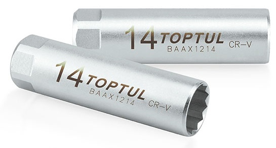 Головка свечная 12-гранная 3/8" 14 мм L=63 мм с пружинным фиксатором TOPTUL BAAX1214 купить в Сургуте и других городах России