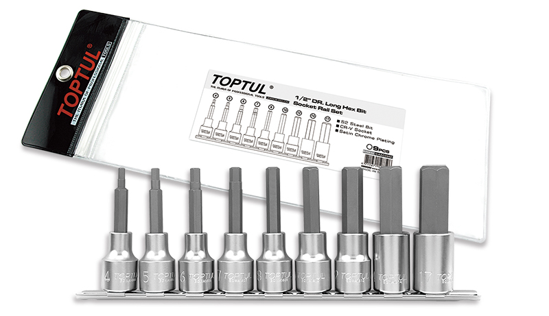 Набор торцевых головок 1/2" с шестигранными вставками 4-17 мм L=80 мм на планке 9 предметов TOPTUL купить в Сургуте и других городах России